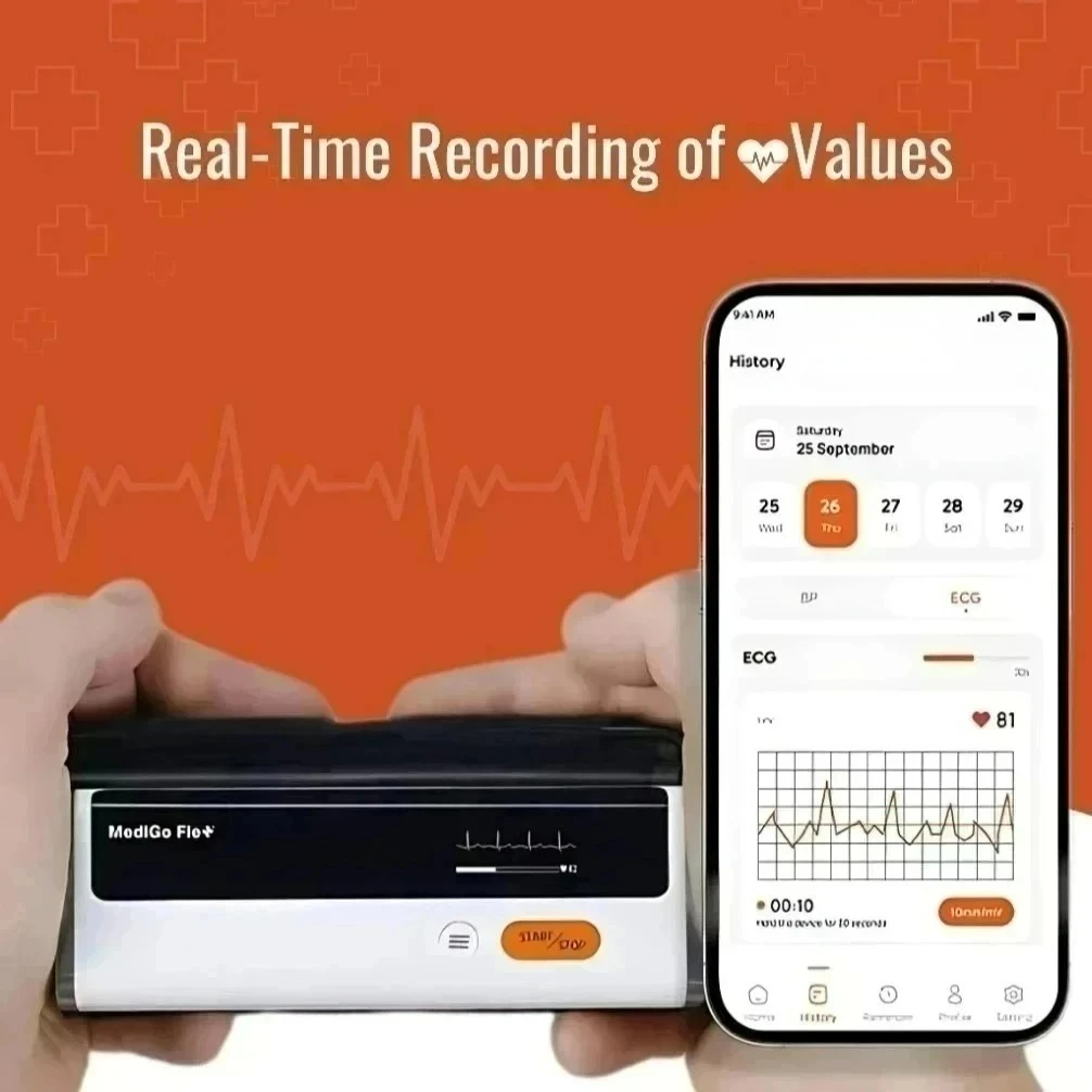 BP + ECG Machine — a compact device combining blood pressure monitoring and ECG analysis for a complete view of heart health. Supports early detection and management of cardiac conditions. Ideal for home or clinical use with simple, user-friendly operation.