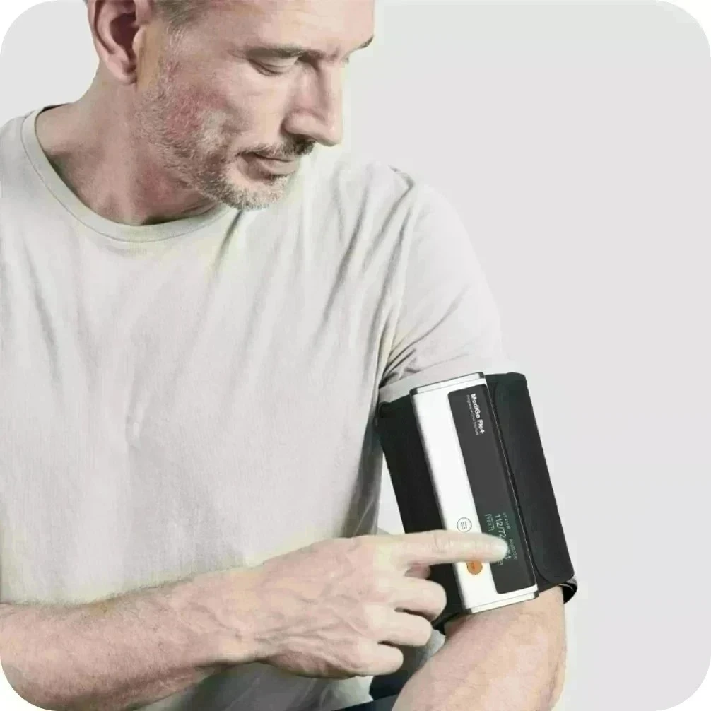 Combines blood pressure monitoring and ECG analysis in a single device.